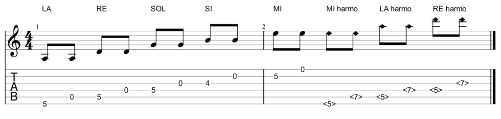 02-01 Accorder la guitare, tempo 20 : LA (A), RE (D), SOL (G), SI (B), MI (E), MI (E) grave, MI grave…