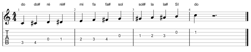 Les sons (appelés degrés) utilisables dans notre musique se suivent demi-ton par demi-ton, ce qui n’est pas le cas de toutes les gammes (orientales, africaines…). Cet ensemble composé de 12 degrés s’appelle la gamme (ou échelle) chromatique. Elle est composée de 7 degrés et 5 notes intermédiaires nommées « altérations » (dièses ou bémols).