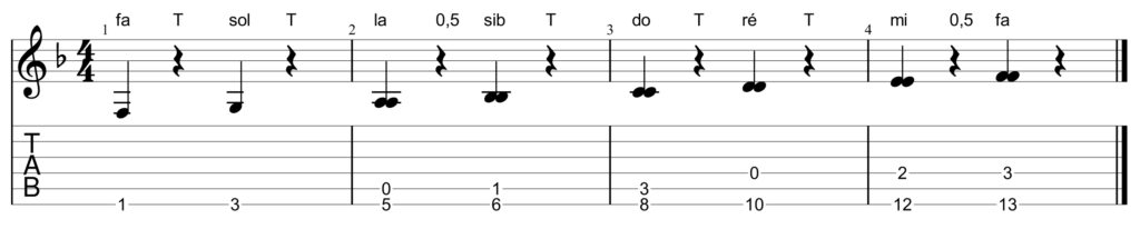 La gamme de FA commence par la note FA et a une seule note altérée, le sib