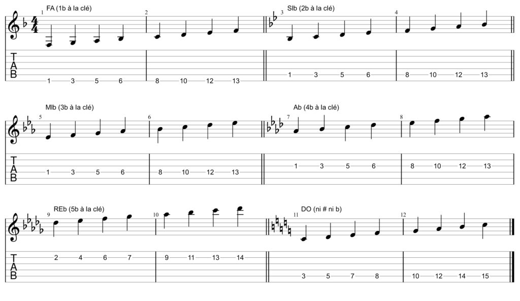 09-06 Les gammes en bémols, Fa, SIb, Mib, Lab, Réb… et la gamme de Do sans altérations