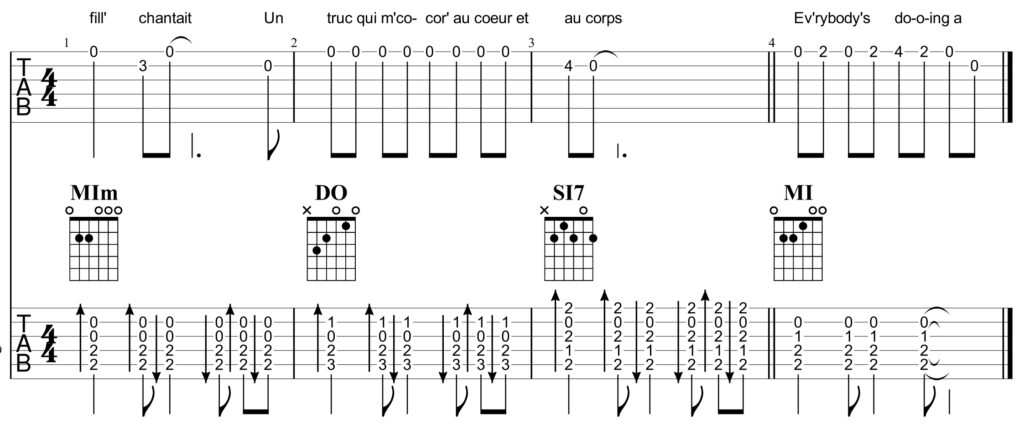 En fin de couplet, Laurent Voulzy décide de plaquer un SI7 sur les mots « au corps » et ce n’est pas pour rien ! C’est pour amèner le MI qui suit, celui de « Ev’rybody’s doing…» et de sa première reprise « Loco-Motion » popularisée aux États-Unis par Little Eva. La transition se fait en douceur. En effet, SI7 + 2,5 tons → MI, c’est une résolution.