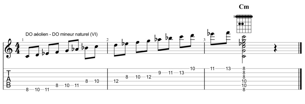 Le mode (et le doigté VI) : do ré mib fa sol lab sib do, est appelé l’Aéolien.
