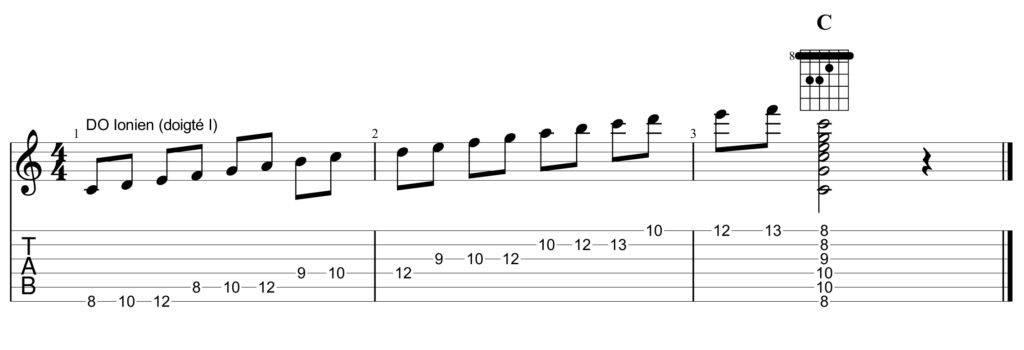 Le mode (et le doigté I) : do ré mi fa sol la si do, est appelé le Ionien.
