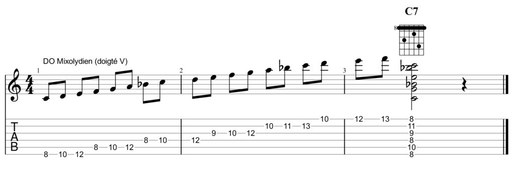 Le mode (et le doigté V) : do ré mi fa sol la sib do, est appelé le Mixolydien.