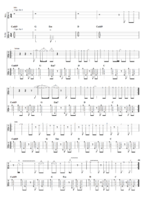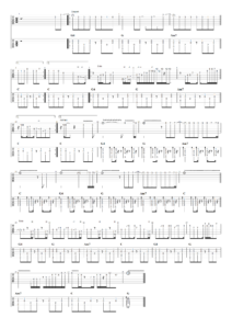 Le morceau, cette fois un peu plus « country », est construit sur une séquence de 3 accords conjugués sur quatre mesures répétées sur l’intégralité du morceau. La mesure est à quatre temps et le tempo d’origine est de 123. Sol Sol Lam7 Do, voilà donc la structure de base. Pour amener de la variété, il faut compter avec l’enchaînement de 3 mélodies, une première sur le couplet, une seconde sur le refrain (manchild…) et une troisième sur un pont instrumental où une impro peut être placée. Mais en quelle tonalité ?