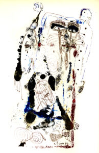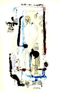 Jusqu’ici, nous n’avons guère retrouvé de dessins de Charles-Jacques Labadille. Néanmoins, en voici quelques-uns : tout d’abord une série de graphes mis en illustration d’un poème intitulé « L’aube dissout les monstres » ; ensuite deux petites illustrations « volantes » aquarellées.