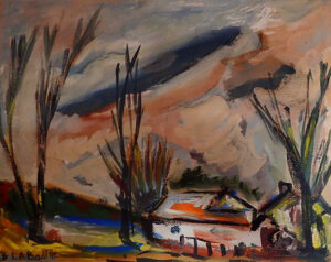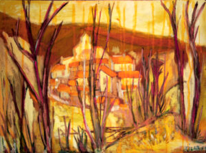 01 Village de montagne (peut-être La Javie, 04). Sans date. Collection Marc et Françoise Guichard 02 Village, sans date. Collection Frédéric Chevrel 03 Village à la colline, 1970. Collection Frédéric Chevrel 04 Les arbres, sans date. Collection Frédéric Chevrel 05 Paysage orange et noir, sans date. Collection Frédéric Chevrel 06 Grand abstrait jaune et noir, 1970. Collection Raymond Rebours 07 Bouquet, 1956. Collection Metayer Mermoz