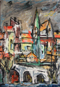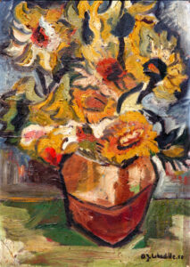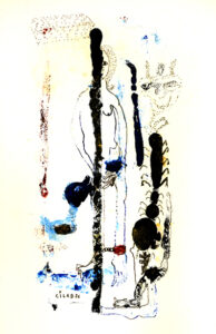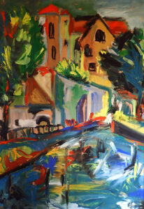 - tout d’abord, la peinture où, à Paris (la Grande Chaumière) et en Province (atelier de La Fourche), il expose seul ou en collectif (Besson, Koura, Marchal un proche de Zadkine…) pendant une trentaine d’années ;