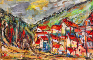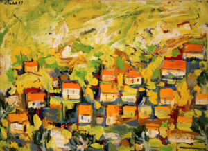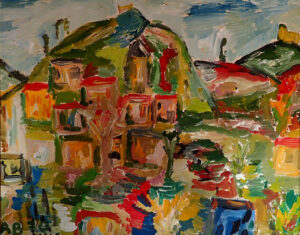 01 Village bleu 1971 02 Village jaune 1969 03 Ardèche n°6 1961 Atelier de la Fourche 04 Ardèche n° 7 1961 Atelier de la Fourche 05 Saint Céneri le Gerei n°1 Sans date 06 Saint Céneri le Gerei n°2 Sans date 07 4 Maisons bleues 08 Sans nom 1960 09 Sans nom 1969 10 Haute Provence n°4 1961 11 Maisons aux toits bleus 1960 12 Nu bleu Sans date 13 Fleurs 1950