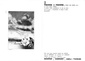 Terminons ce tour d’horizon en poésie par un autre travail que j’ai réalisé avec mon père en 1976. Il permet d’établir un lien avec la galerie suivante où son présentées mes « oeuvres de jeunesse » ! Les poèmes sont de Charles-Jacques Labadille, les illustrations, les graphes et la mise en page d’un certain Abbads qui, je vous le jure, est encore un de mes pseudonymes. Ce recueil, paru aux Editions de l’Ecchimose, a été édité sous le nom de « V’là un brin de terre pour les ciels fauves de Ganagobie » et diffusé dans la revue du même nom par Didier Michel Bidard.