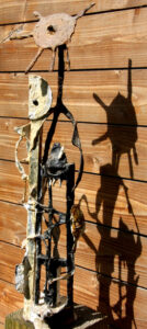 « Le Bien et le Mal sous le soleil »… cette sculpture faite de bois, de fil de fer, de punaises, de papier mâché, de gouache et d’un peu de vernis, a résisté au temps et est toujours exposée dans un coin de salon. Aujourd’hui encore, je me demande pourquoi mon père, de nature pourtant plutôt mélancolique, a fait le Bien (en blanc) plus grand et plus proche du soleil que le Mal (en noir évidemment)… Il faut sans doute croire que l’espoir est chevillé au corps de l’homme !