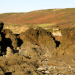 Quittons les grès pour revenir aux granites et en particulier à ceux de Flamanville situés un peu plus au sud. Cet arrêt ne tient certes pas à la notoriété nationale de cette dernière commune surtout due à la présence d’une centrale nucléaire « les pieds dans la mer », de surcroit voisine de l’usine de retraitement de la Hague (située à une vingtaine de kilomètres…) ; ni à la célébrité devenue internationale d’une collectivité engagée dans un projet d’Evolutionary Power Reactor (EPR), ce « réacteur pressurisé européen de troisième génération » qui équipera également quelques autres sites de par le monde (Finlande, Chine). Mais il serait dommage de ne pas s’imprégner ici des remarquables paysages du nord de la péninsule et de la Hague, sorte de « Bretagne en raccourci » comme le disait le géologue Alexandre BIGOT.