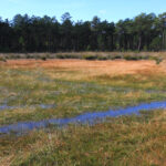 La visite de l’estuaire peut se conclure par une « virée », une dizaine de km plus vers l’est, jusqu’aux remarquables Landes de Lessay qui couvrent aujourd’hui environ 1500 ha (mais très morcelés, jadis 5000 ha !) sur des grès paléozoïques. C’est certainement à l’ouest de La Feuillie (en remontant le cours de l’Ay au sud-est de Lessay) ou encore vers Créances (sentier de découverte vers le Vivier et GR 223) que s’expriment le mieux les cortèges de landes sèches et tourbeuses encadrées par les boisements de pins et ponctuées, entre autres, de piment royal (Myrica gale) et de gentiane pneumonanthe (Gentiana pneumonanthe)… La forêt de Pirou, vers l’Éventard (avec chemin de randonnée), permet également de belles découvertes. À la nuit tombante, vous aurez peut-être, par chance, l’occasion d’y entendre l’engoulevent d’Europe (Caprimulgus europaeus), oiseau mimétique mais moins discret lorsqu’il lance de longs ronronnements très sonores qui lui ont valu le surnom « d’oiseau-mobylette ».