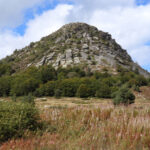 Le métamorphisme de contact concerne des terrains « chauffés » à la proximité immédiate d’une grosse « bulle » granitique. Souvenez-vous par exemple de nos « virées » en Suisse Normande : les cornéennes (et schistes tachetés…) y dessinent une auréole relativement étroite autour d’un magma qui deviendra du granite en refroidissant. Ainsi, bien des massifs granitiques sont entourés d’une auréole de roches surcuites, plus dures et de ce fait, souvent plus résistantes à l’érosion.
