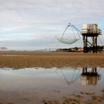 Pour se persuader de cet affrontement toujours d’actualité entre deux mondes si différents, suivez-nous dans un curieux endroit qui ne craint pas d’exposer sa nature composite, encore plus étonnante aux lueurs du couchant. Il s’agit, à une cinquantaine de kilomètres à l’ouest de Nantes, sur la commune de Saint-Brevin-les-Pins (pointe de l’Imperlay) et à deux pas du viaduc de Saint-Nazaire, d’un alignement de pêcheries que d’aucuns qualifieraient d’archaïques, d’autres d’authentiques. Toujours est-il que cette enfilade de constructions précaires, fragiles avancées improbables vers l’Océan, faites de savants pilotis, de passerelles hasardeuses et démesurées (jusqu’à 120 m de long), de planches assemblées selon les moyens du bord, a de quoi étonner, encore plus lorsque le soir tombe et que, sur l’autre rive, s’allument les feux de la technologie, les lumières de Saint-Nazaire, du port et de la raffinerie qui reflètent et tremblent doucement sur les flots : le contraste est alors saisissant entre ces deux univers qui se télescopent visuellement au dessus du large estuaire.
